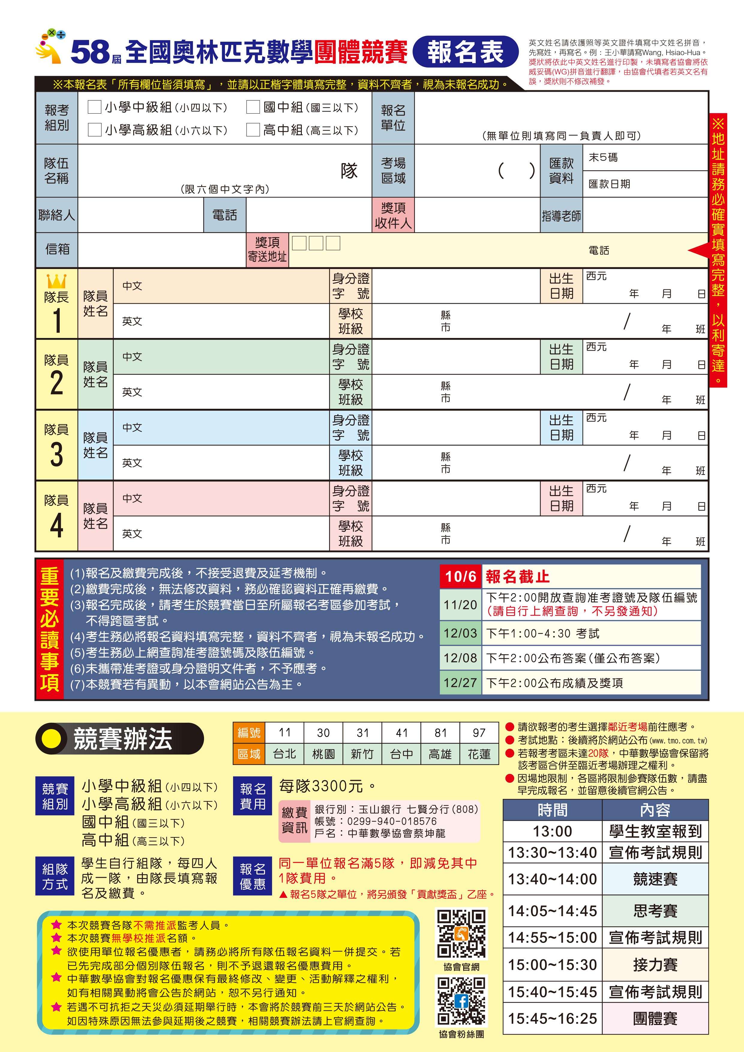 三、檢附「第58屆全國奧林匹克數學團體競賽」競賽活動簡章。