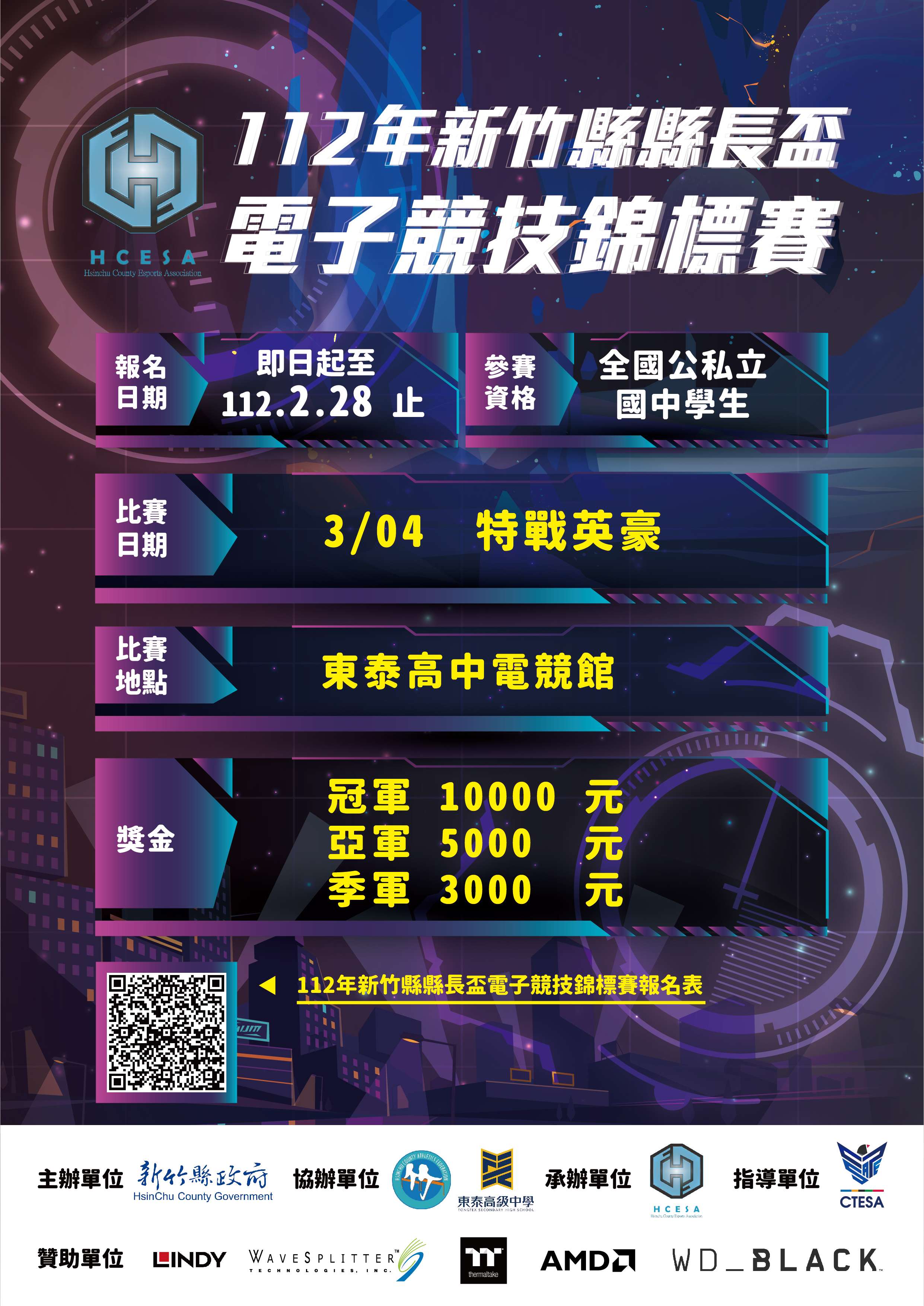 報名方式:公告於【新竹縣體育會電子競技委員會】 Facebook粉絲專業。
