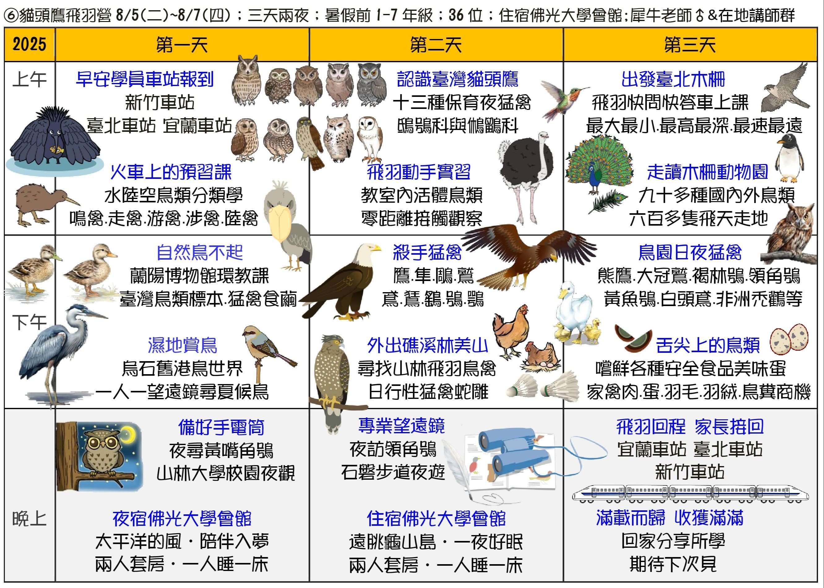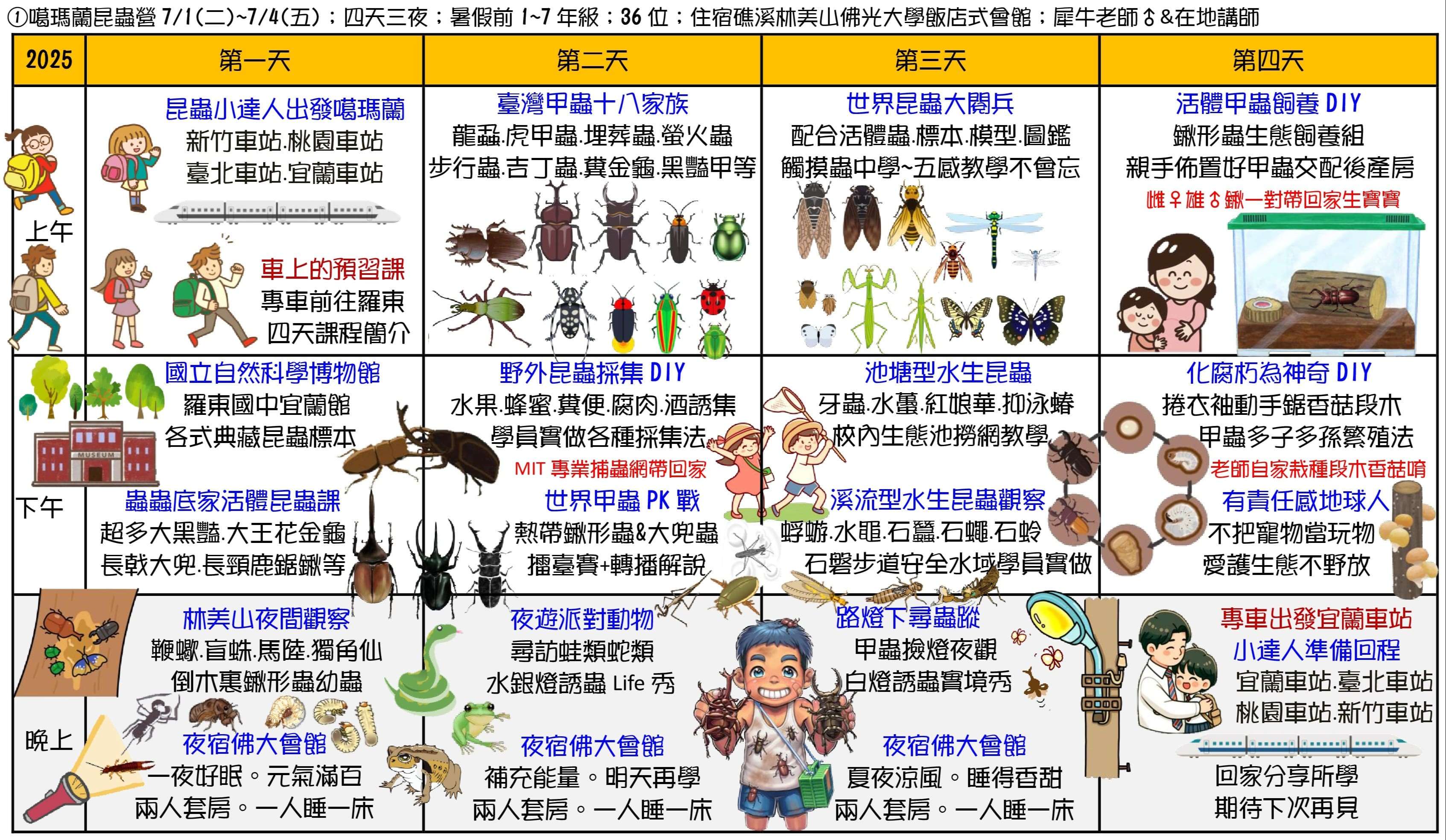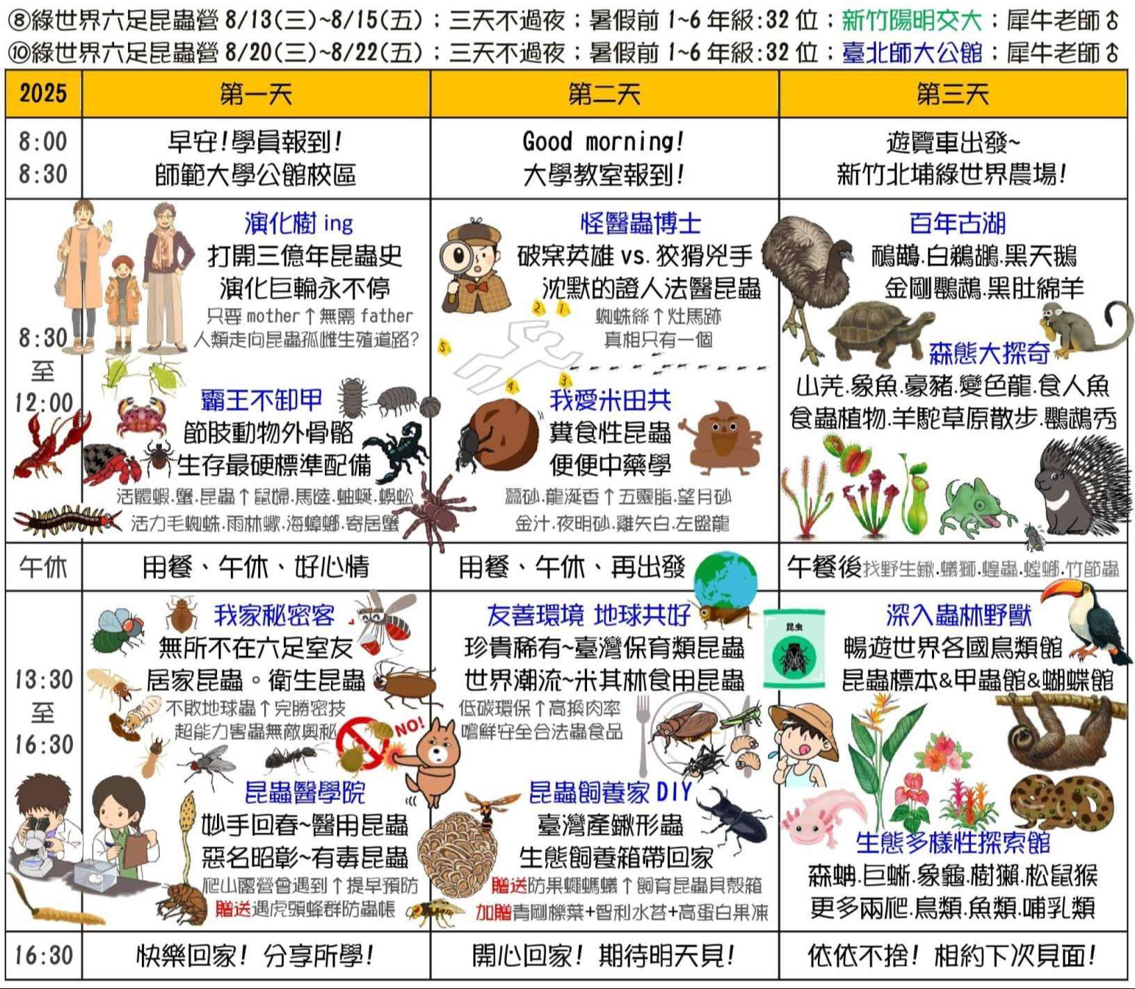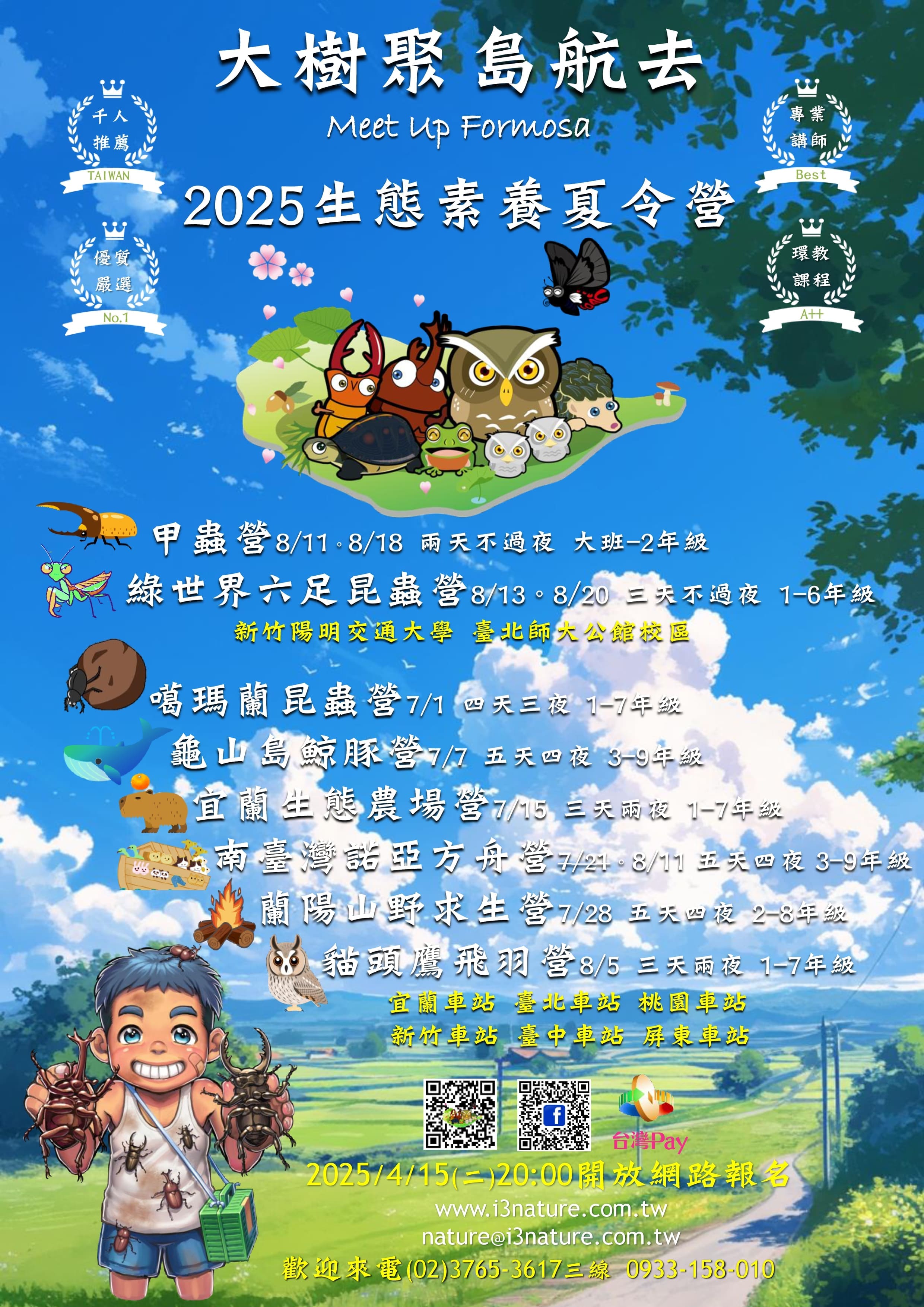 日期:7/2~8/26,招生涵蓋大班-九年級學員,請依不同課程分齡參加,詳細請見營隊網站 https://www.i3nature.com.tw/