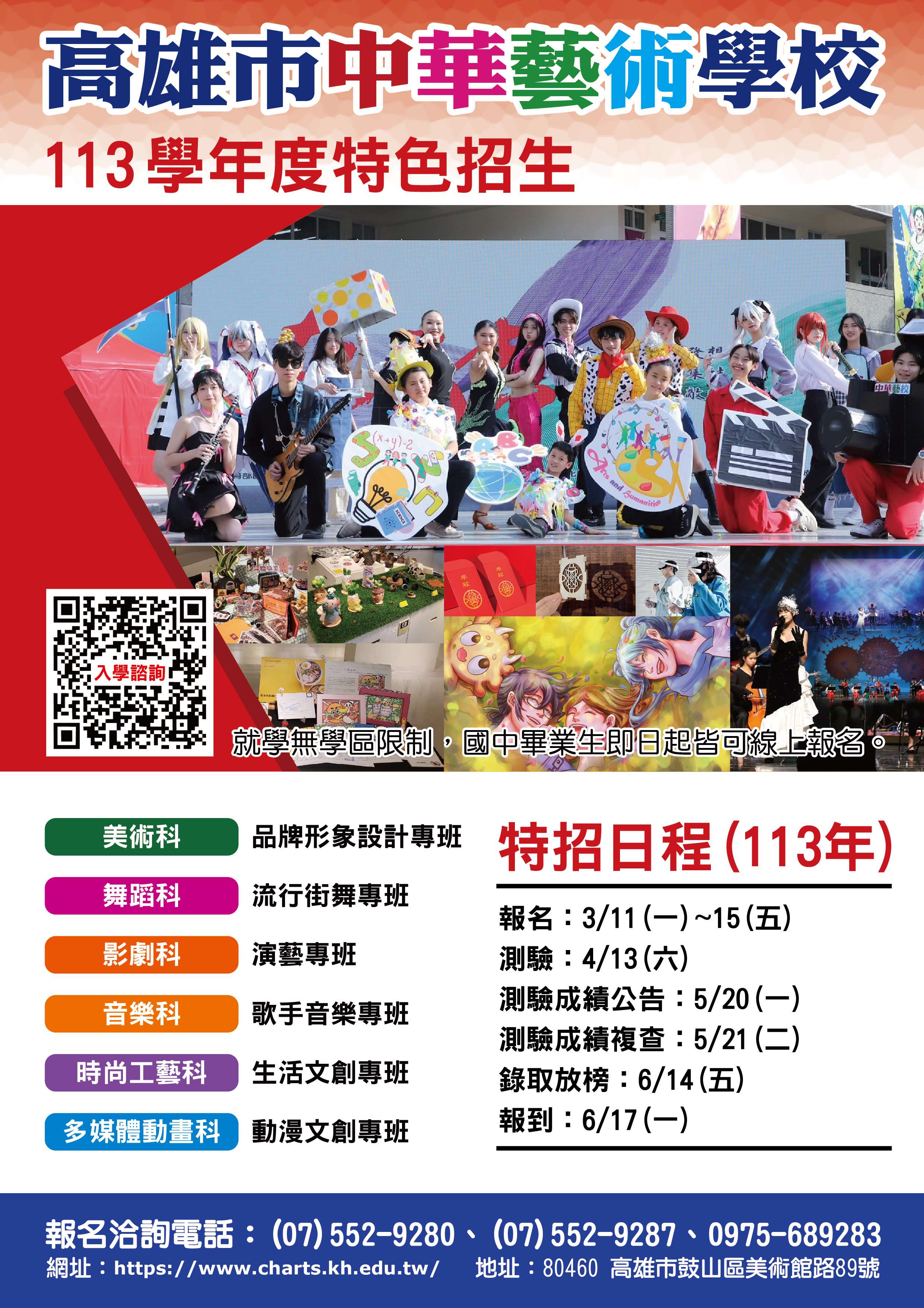 科、影劇科、音樂科及舞蹈科,相關資訊詳見招生DM(如附