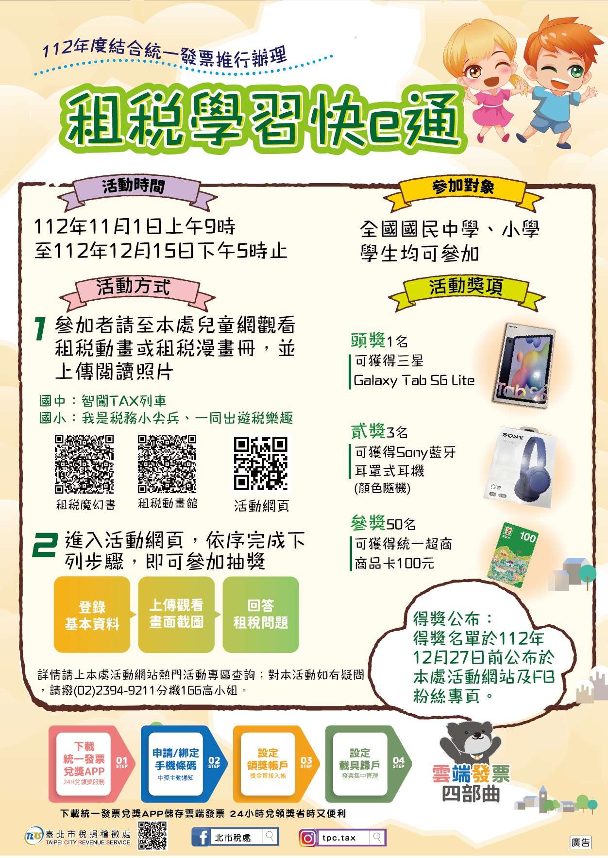 (三)活動詳情請參閱活動網頁(網址:https://services.arpa.tpctax.dof.gov.taipei/act/112learning/)。